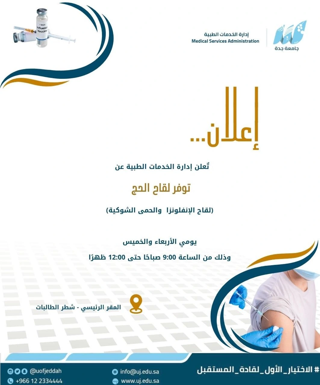 إجراء الفحص الطبي على جميع الطلاب المستجدين وتحديد مدى لياقتهم للدراسة في كليات الجامعة.